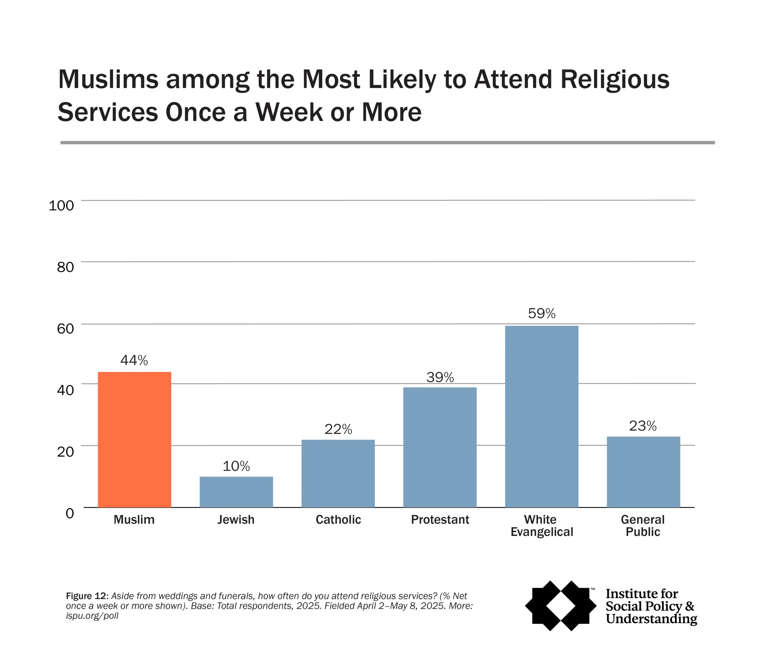 ISPU’s survey of American Muslims, Jews, Catholics, Protestants, and the non-affiliated is one of a kind, offering the latest trends and demographic data on American Muslims. And every year, we rely on individuals like you to keep this research free and accessible to all. Right now, we need your help to keep it that way, so that millions can remain informed on the topics that matter the most. If you value the reliable data our poll provides, consider making a donation—big or small—in support of ISPU’s American Muslim Poll. It only takes a minute. Thank you.