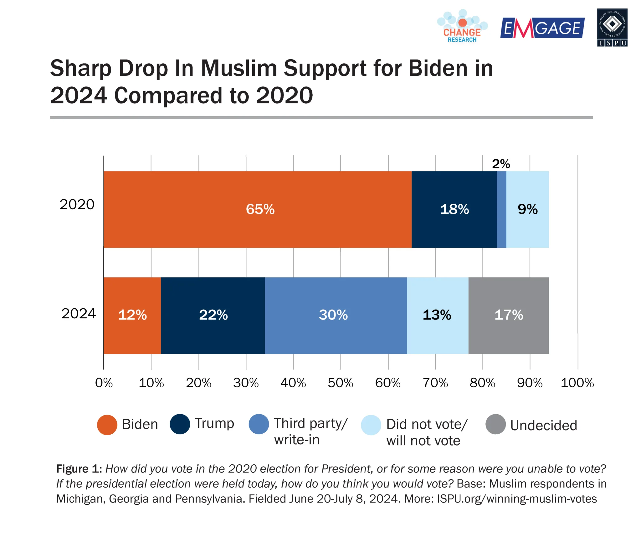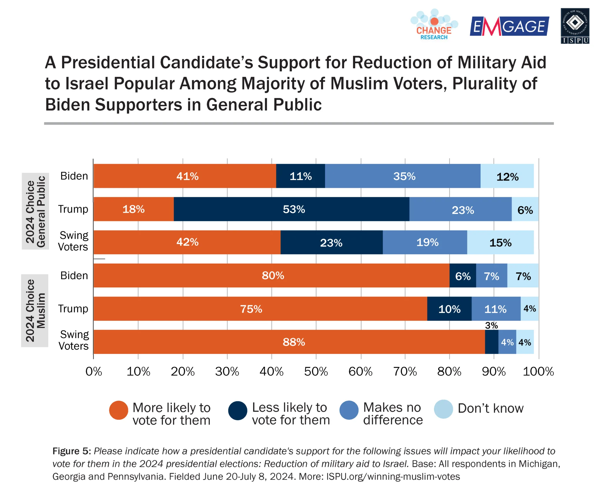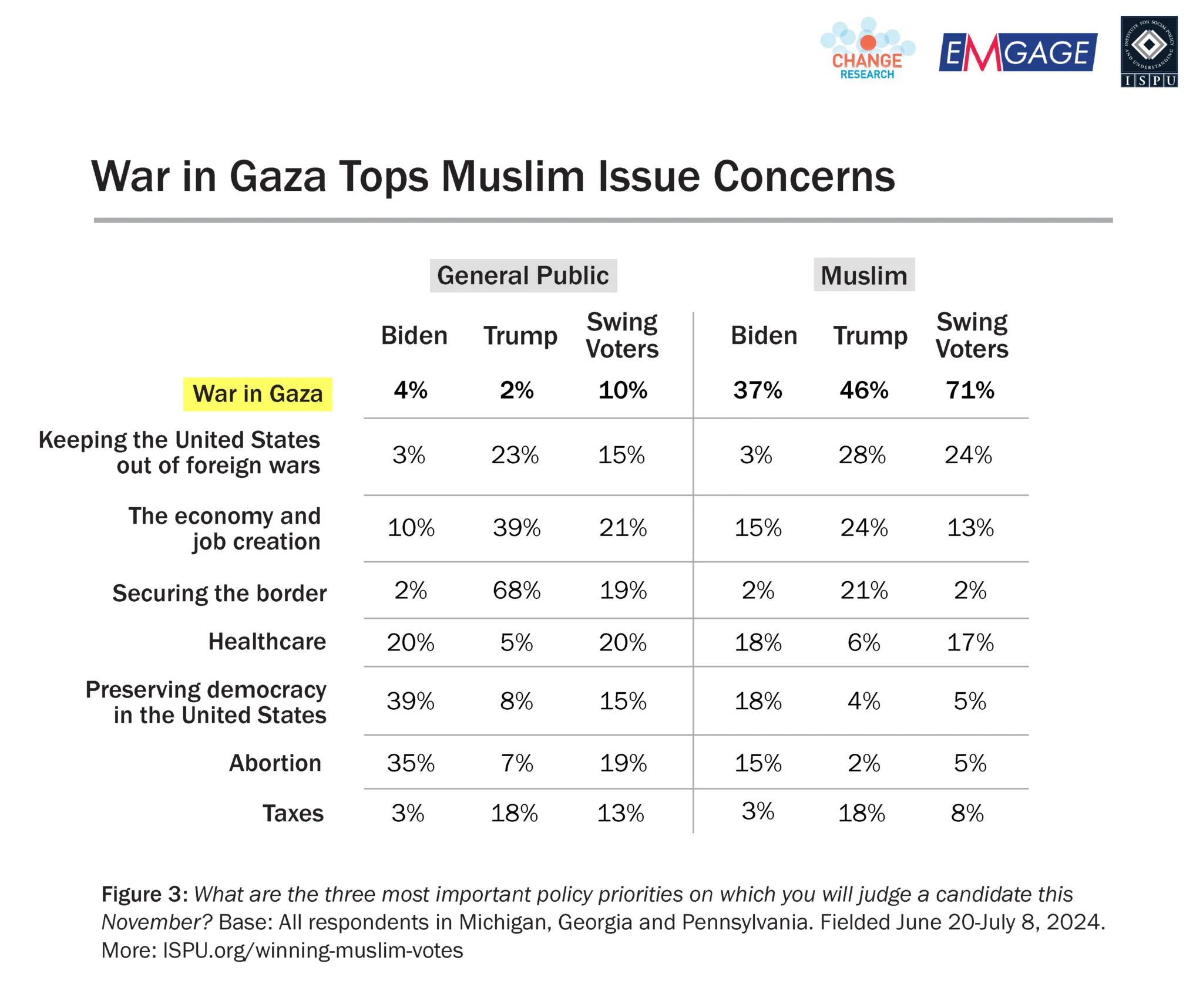 While President Biden is no longer the Democratic nominee, insights from this survey remain relevant to any candidate of any party wishing to win Muslim votes in three key swing states.