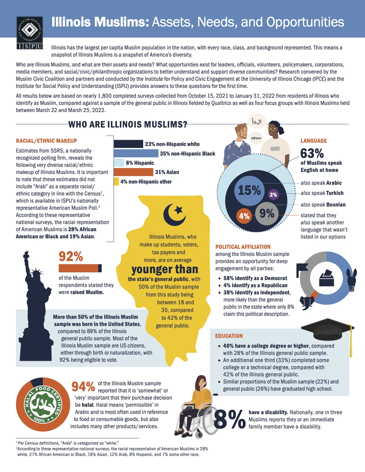 Thank you to the Illinois Muslims Report Task Force members , who were key to this historic report. Special thanks to the IL Muslim Civic Coalition board members and community leaders who provided input and great support throughout the process. Finally, thank you to all the partners and allies who shared the survey and recruitment notices, as well as those who participated in the research.